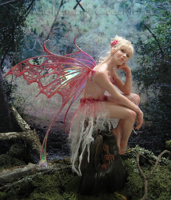 A beautiful ethereal fairy sitting on a tree trunk, listening... yes,