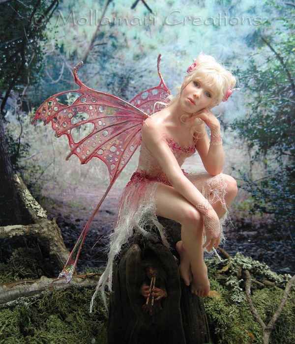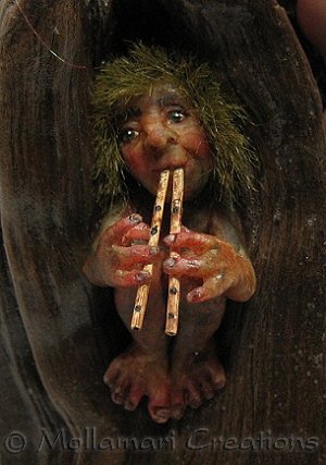in the treehole playing twin-flute! Fairy Alycia loves her little