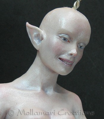 So, she has got paint now. I gave her several thin white washes, and then gave her shimmer with pearl Ex powder!