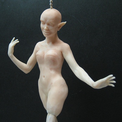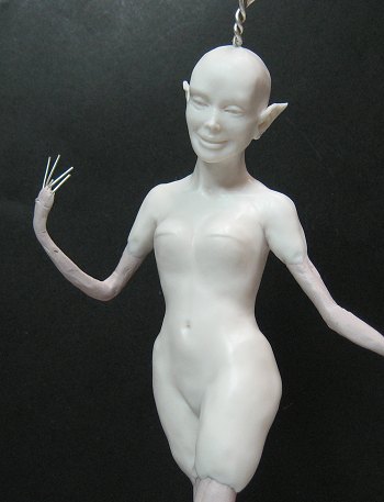 But her head is about finished, I am now sculpting her torso, trying to decide will she be wearing covering outfit or not.