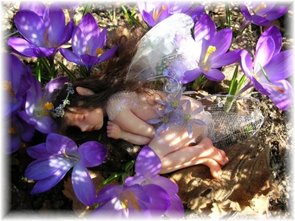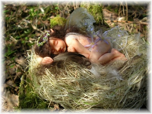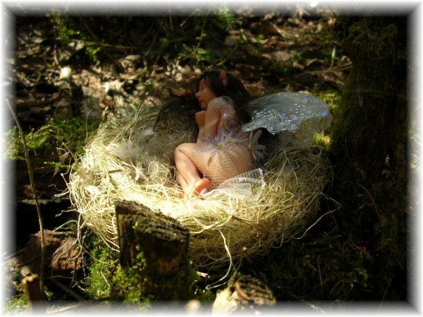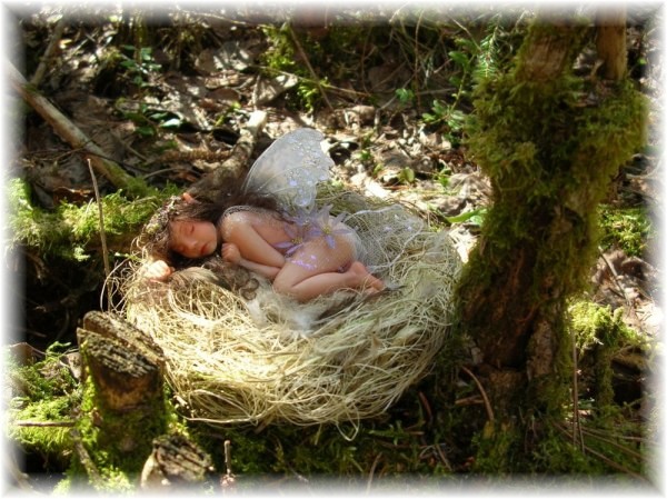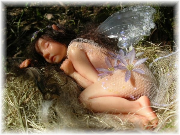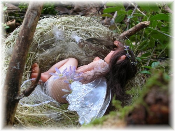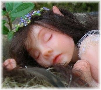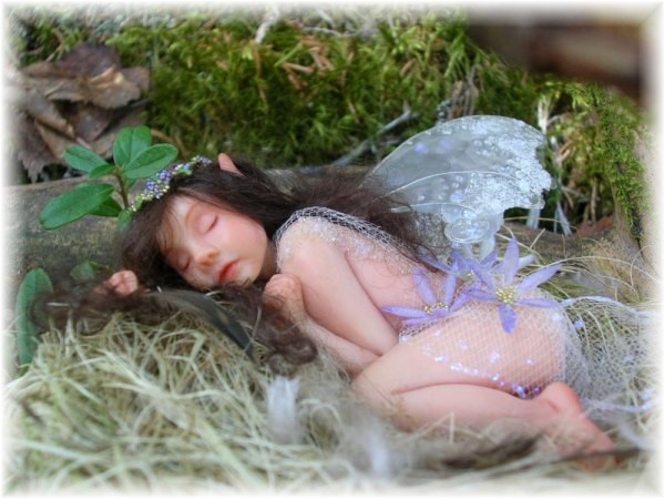 sleeping little innocent forest fairy child, she has been playing with