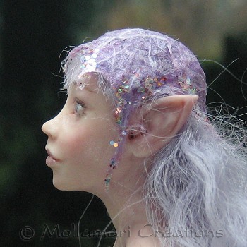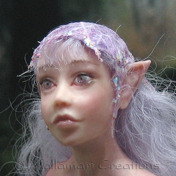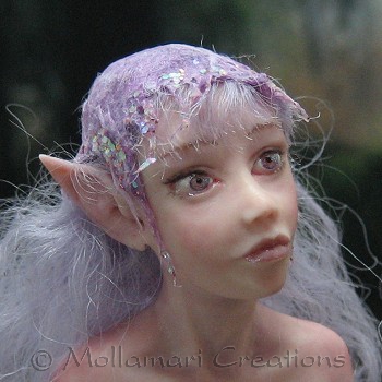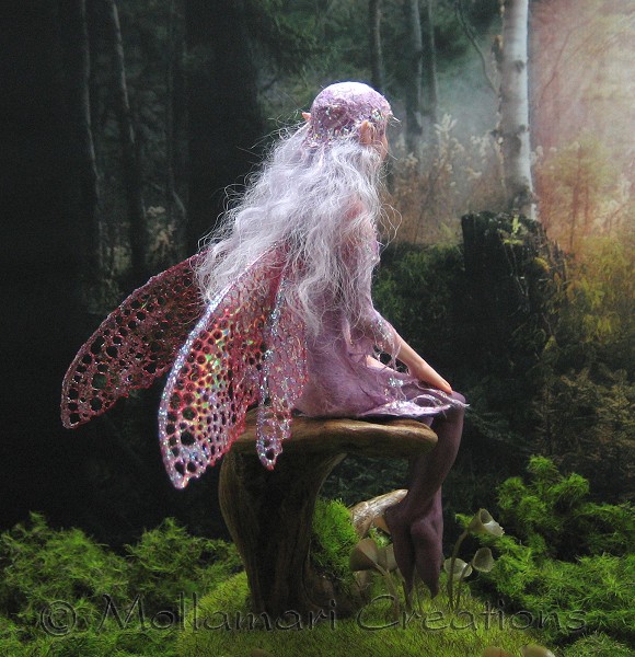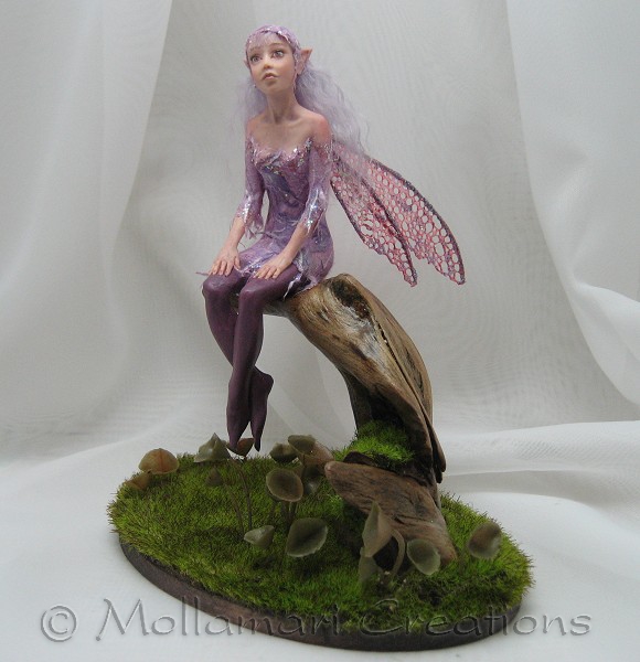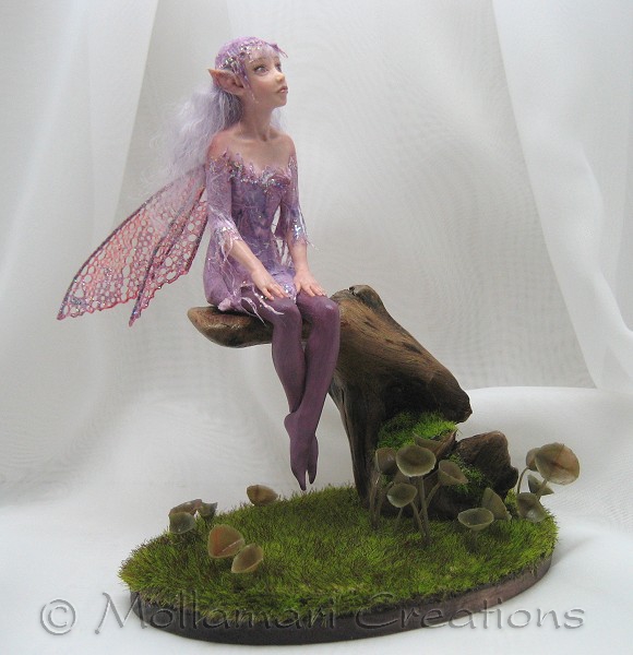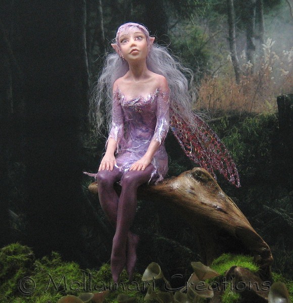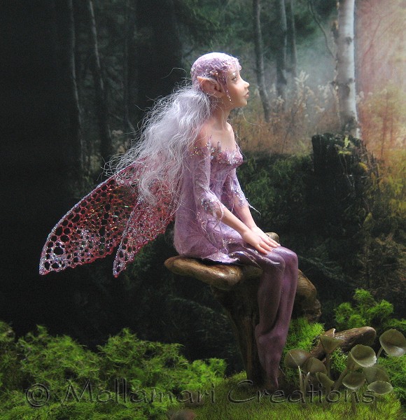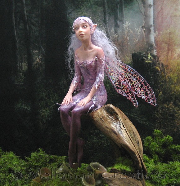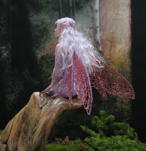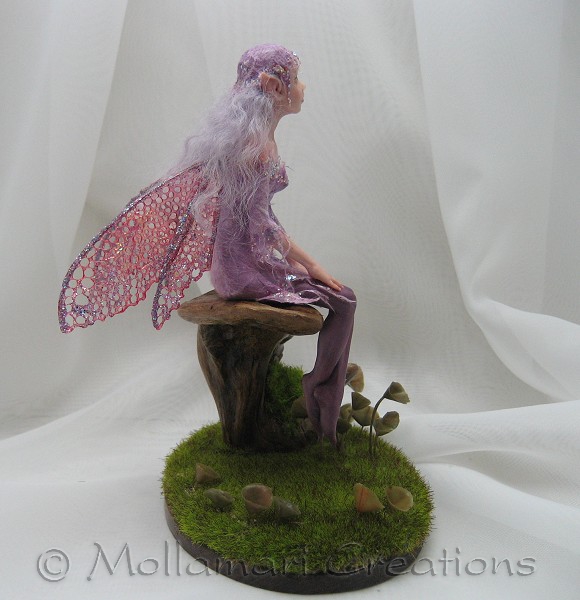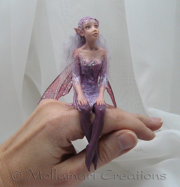 She is much smaller than my usual fairies, she would be only 13 cm ( 5 inches) tall if she were standing.