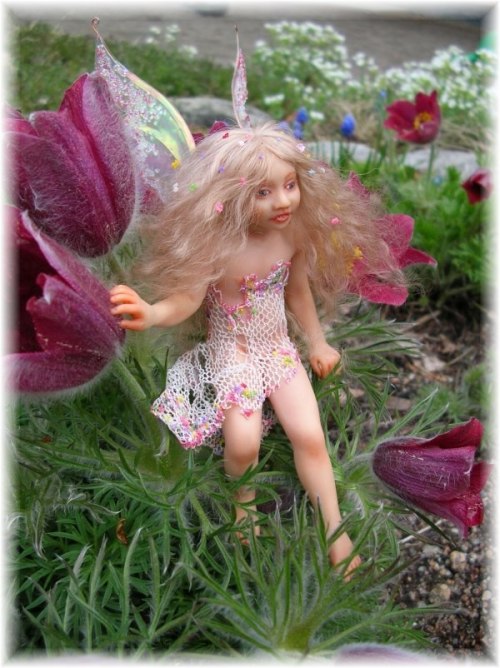 made from polymer clay over wire armature, and she is one-of-a-kind